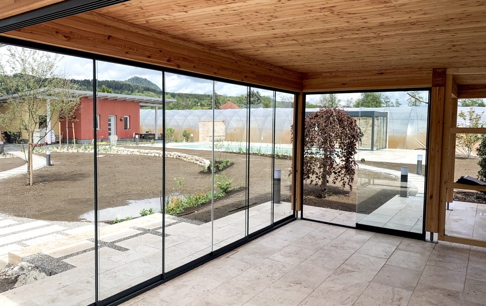Mit transparenter Leichtigkeit verwandeln wir Ihre Terrasse in einen erweiterten Wohnbereich. Genießen Sie Lebensqualität vom ersten Frühlingstag bis zur Spätherbstsonne. Unsere rahmenlose Glas-Schiebewand der Firma SUNPARADISE bietet Ihnen wetterfesten Schutz und freien Panoramablick zugleich.