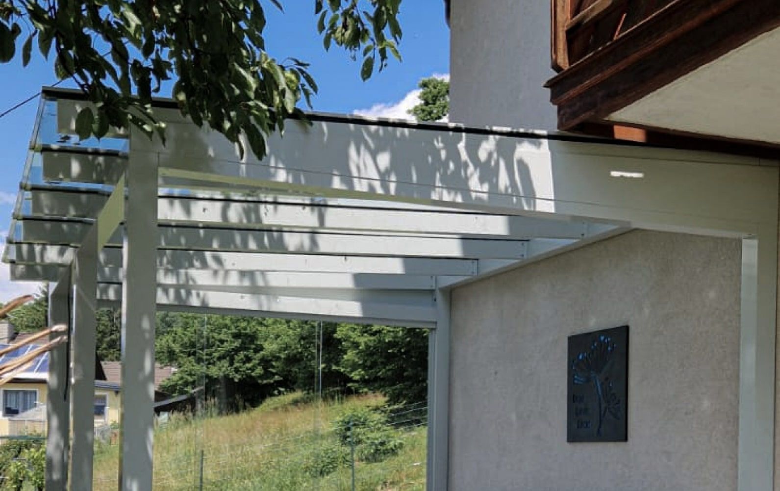 Wir verarbeiten verschiedenste Materialien in modernem & edlem Design. Wir kombinieren Aluminium, Edelstahl & Glas und nutzen die jeweiligen positiven Eigenschaften, um den perfekten Schutz zu ermöglichen. Dabei sind unsere Überdachungen langlebig und pflegeleicht.